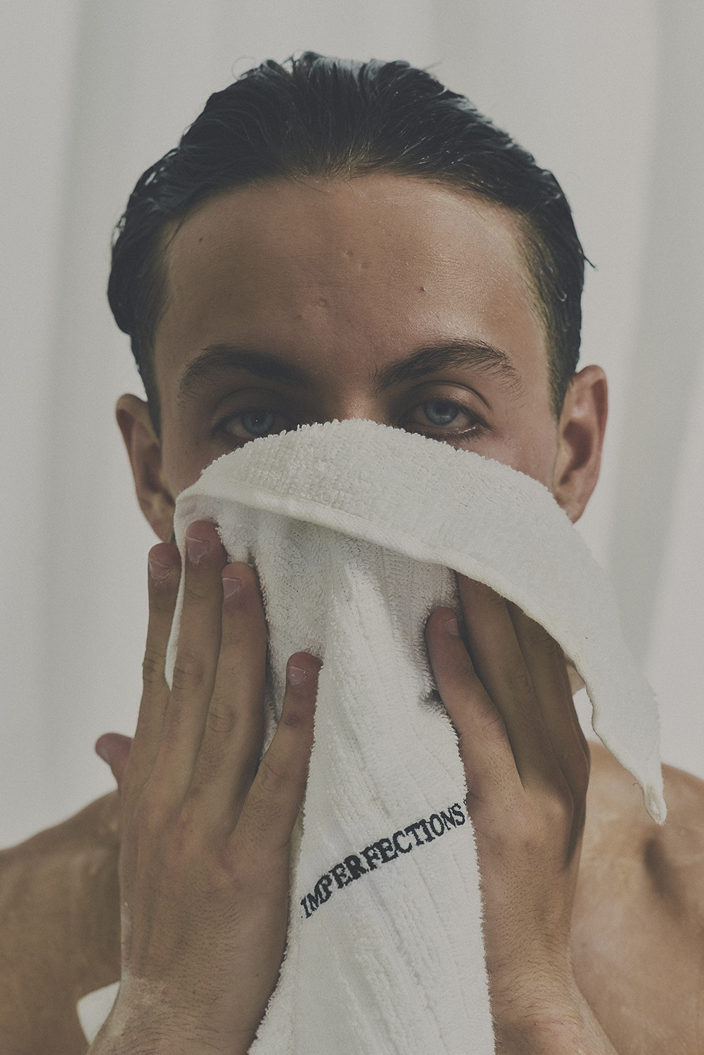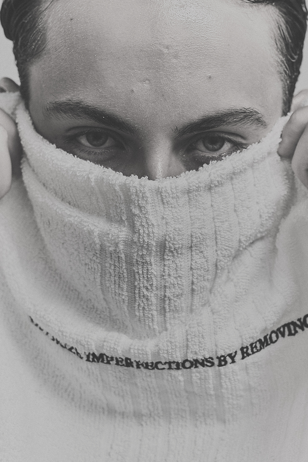 DRY YOUR FACE WITH THE TOWEL KEEP YOUR EYES CLOSED AND CONNECT WITH YOUR INTERNAL SELF.